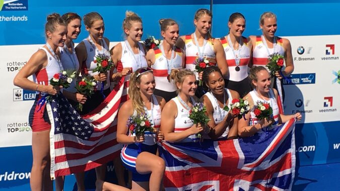 Former Washington rower Fiona Gammond ’15 won a gold medal in the Great Britain women’s four Saturday, wrapping up a strong week for UW alumni at the World Rowing Championships in Rotterdam.